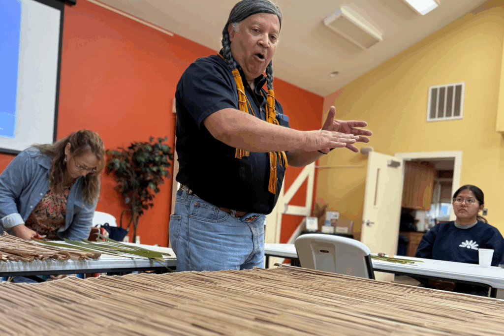 The experience culminated in a cattail basket-making workshop, led by Mario. In community, Mario pairs elders with youth to teach the craft—highlighting the value of intergenerational learning and teamwork. Each CNAY staff member was paired with a fellow to complete a functional basket. Woven into each basket were family stories, laughter, determination and new ideas for the future.