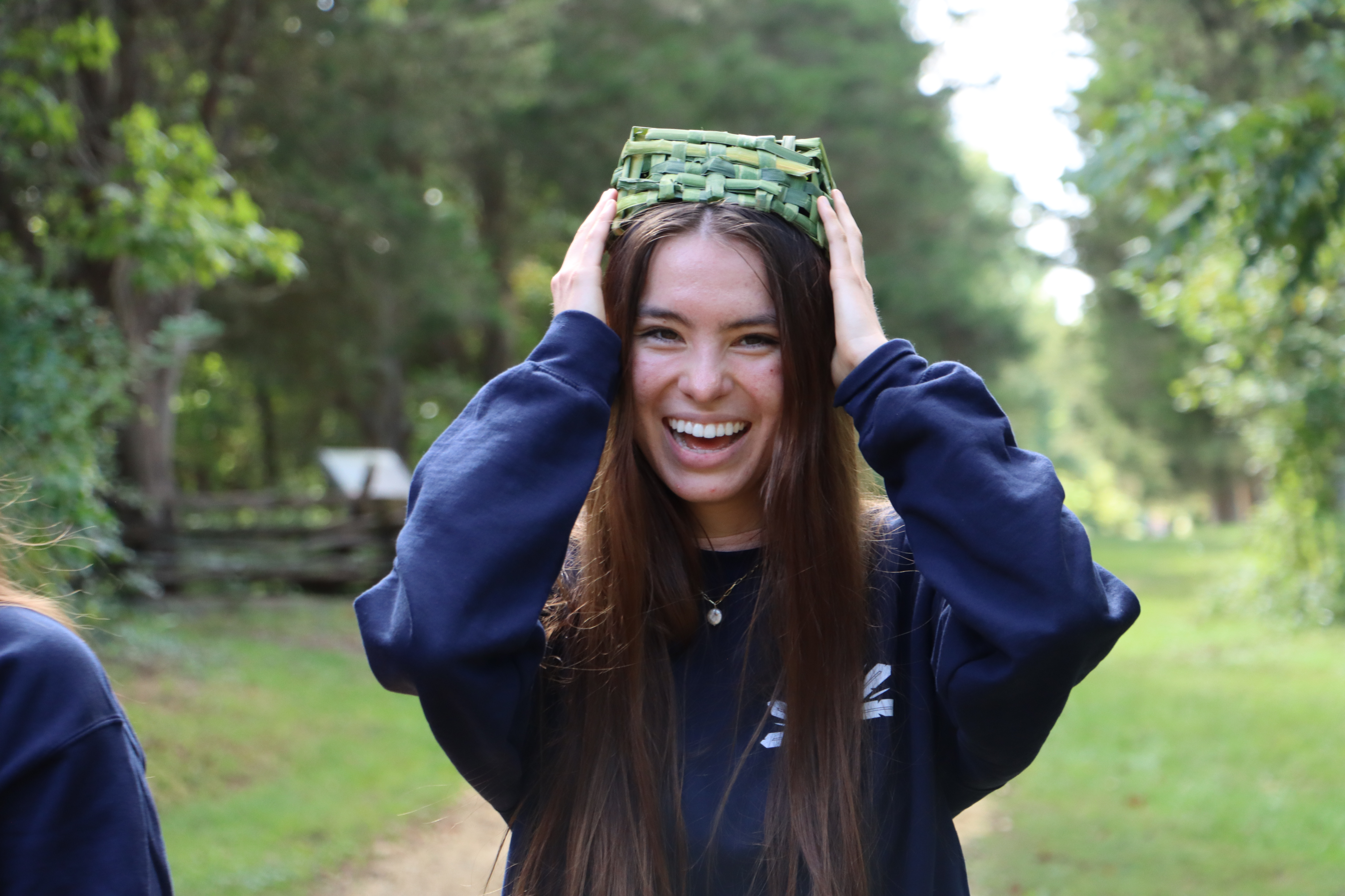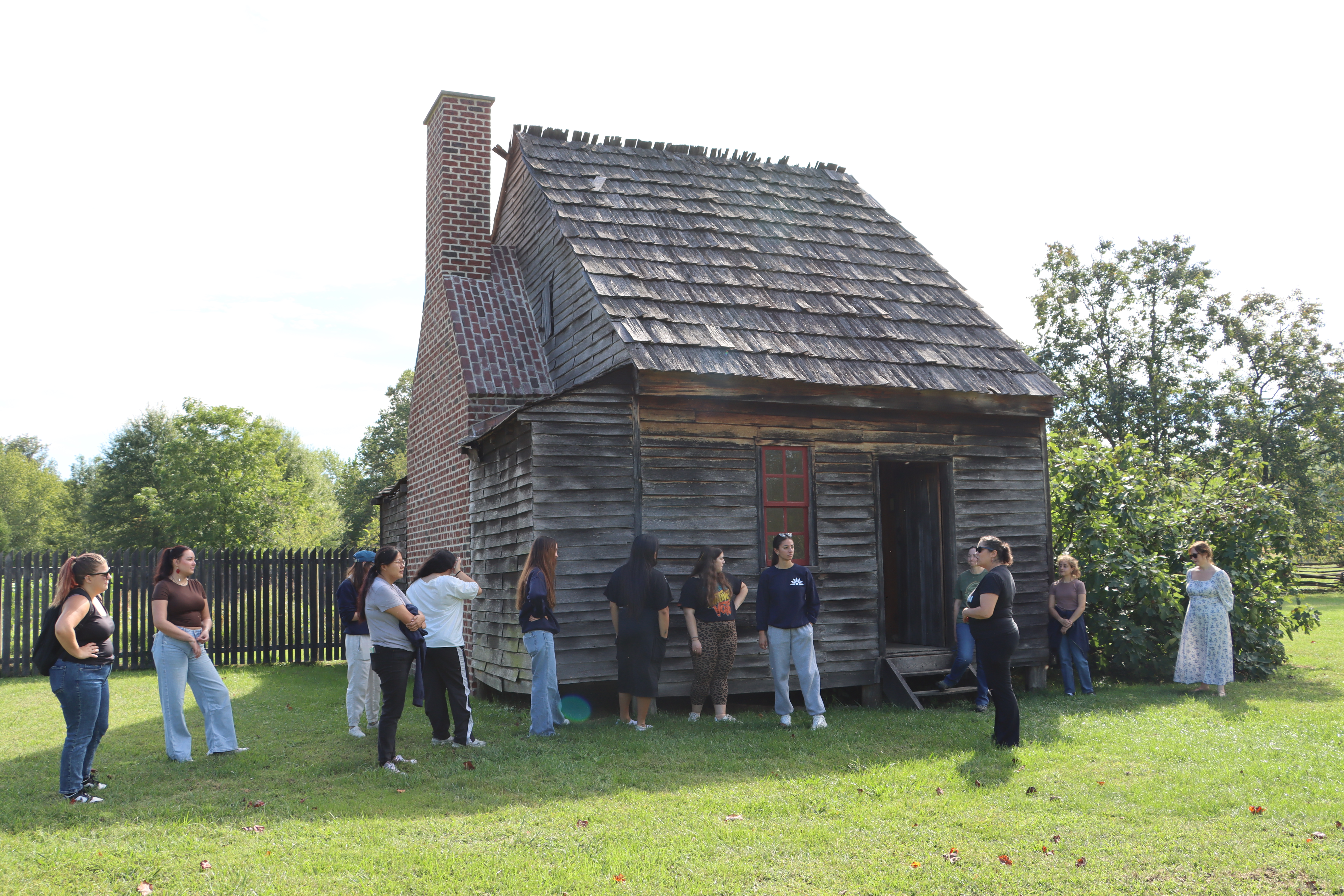 Walking out onto a wooden pier, we gazed across the water to Mt. Vernon – emblematic of the Piscataway’s people’s resilience amidst the colonizers who sought to erase them. Mario highlighted these stories of resilience when sharing how his ancestors lived—and continue to live—in harmony with the land and wildlife along the Potomac River, sustaining themselves through a deep connection to the fish and natural environment. As we admired the river’s beauty, we were greeted by a bald eagle soaring above. Our tour continued through a historic tenant house and into a vibrant garden filled with labeled vegetables ready to be harvested.