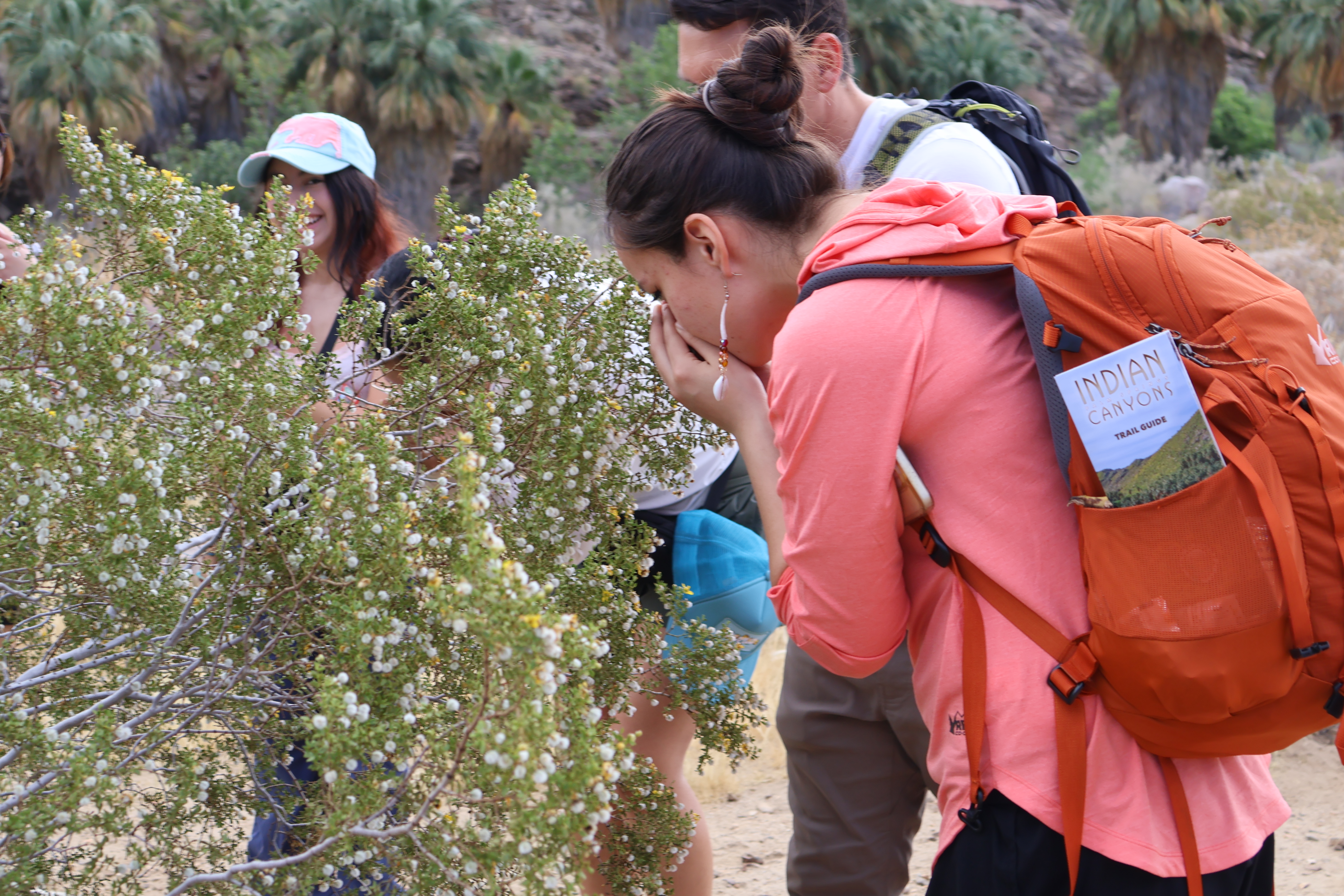 The Brave Heart cohort – Amaria Rosado (Confederated Tribes of the Chehalis Reservation), Christina ‘Mool Mool’ Kaltsukis (Yakama Nation), Hilary Penfield (Blackfeet), Isabella Haakanson (Old Harbor Sugpiaq), Jeamilett Martinez (Mazahua & Mixtec), Kailani Sirois (Colville Confederated Tribes & Poundmaker Cree) and Toipureenah Orozco (Mazahua, Rarámuri & Wixárika) – left bright and early for a hike through Indian Canyons. Vice Chairman Purnel led their journey, identifying local plant and animal life and providing unique insights into water rights settlements.