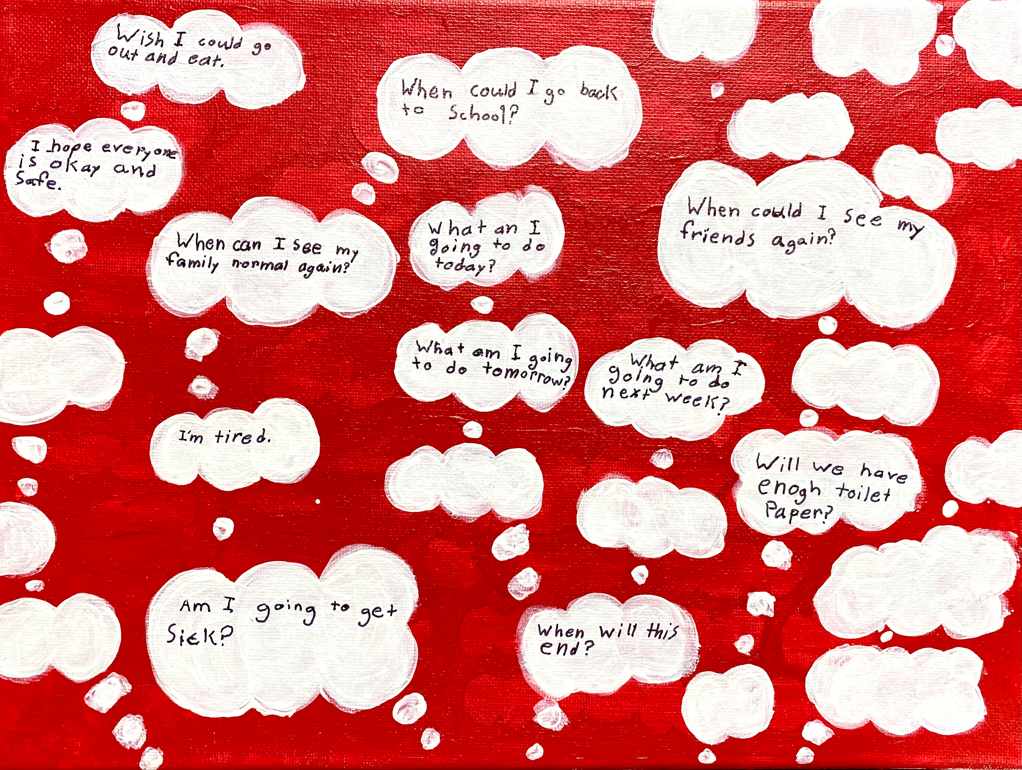 Acrylic paint on canvas, ink. 9×12″