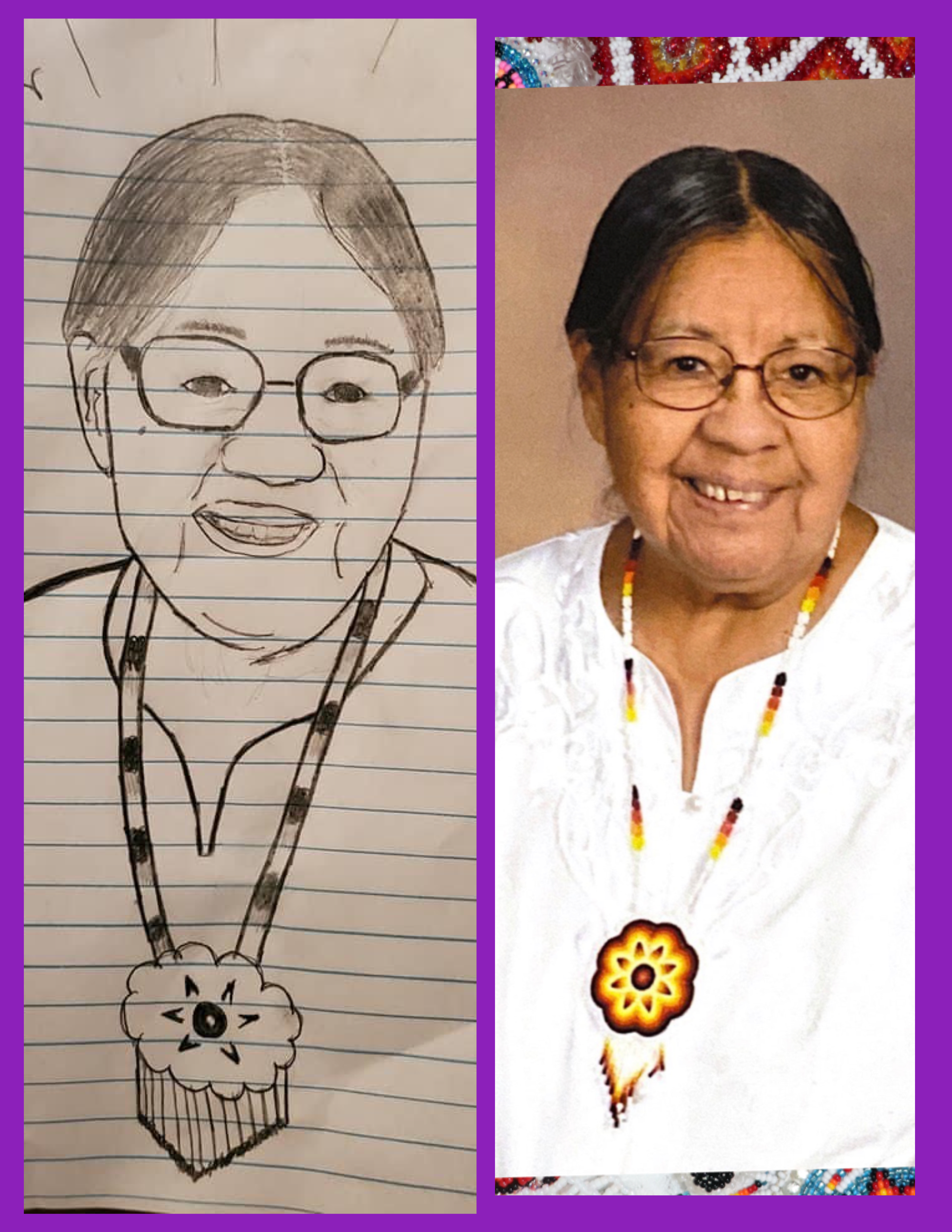 It is a portrait of my grandmother. She passed away in December of 2020. She is my future because of who she was. I want to be able to speak my language more fluently. I want to encourage my friends to speak our language more and take pride in our culture. In the future, I want my generation to not be afraid of who we are. I want to be a role model in my community. Just like how she was to me. She never once was afraid of being who she was and that is what I want my future to be.
