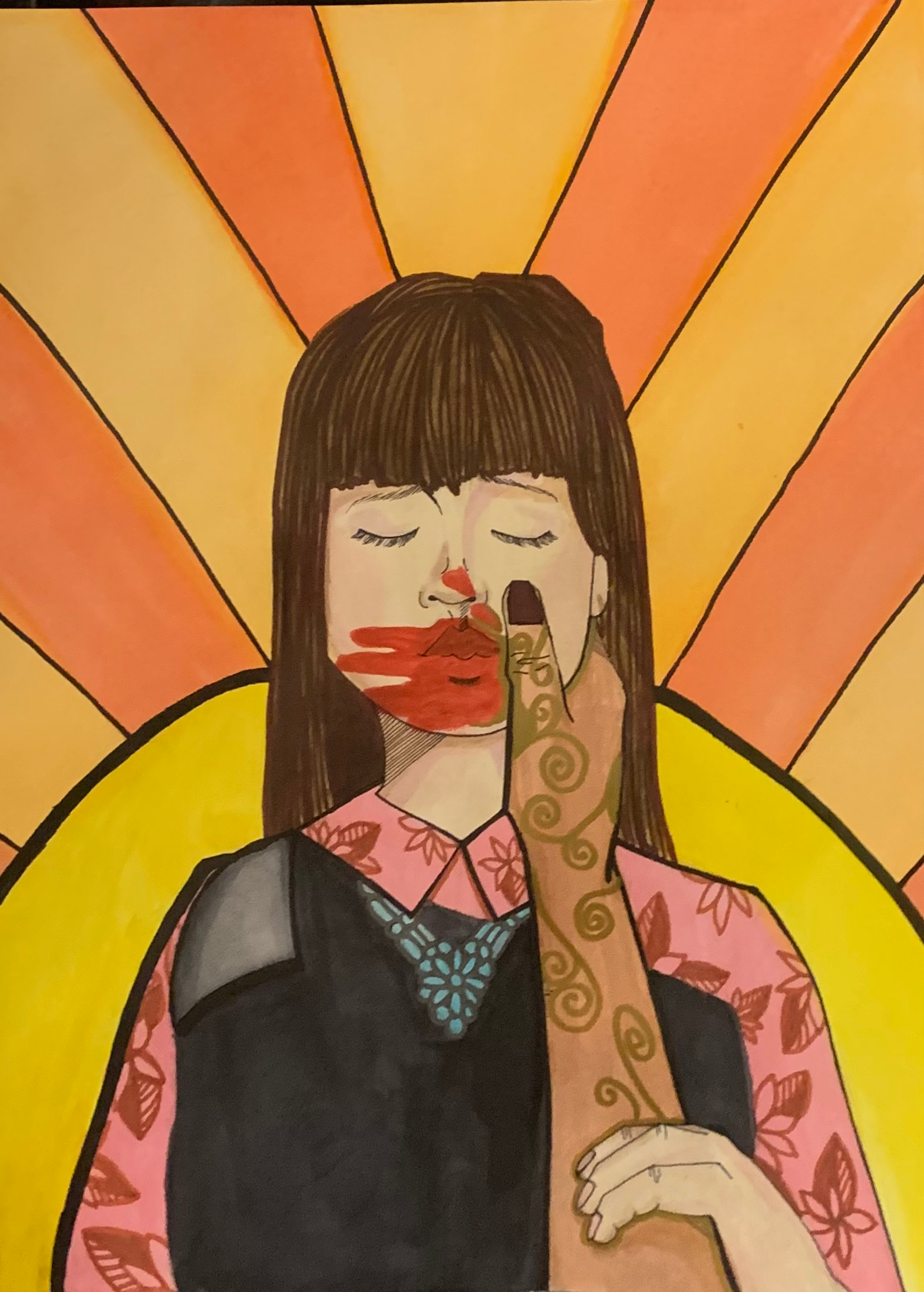 My piece depicts an Indigenous woman, whose voice was silenced through violence, receiving her justice. My hope for the future is that all murdered and missing Indigenous women, as well as two-spirited individuals, get their own justice. Indigenous communities have suffered through so much and with justice for our loved ones we will begin to heal. As a young Indigenous woman, I should not have to worry about the statistics that threaten my life and I want better for my younger cousins. I want the government to prioritize our lives and to start protecting Indigenous communities.