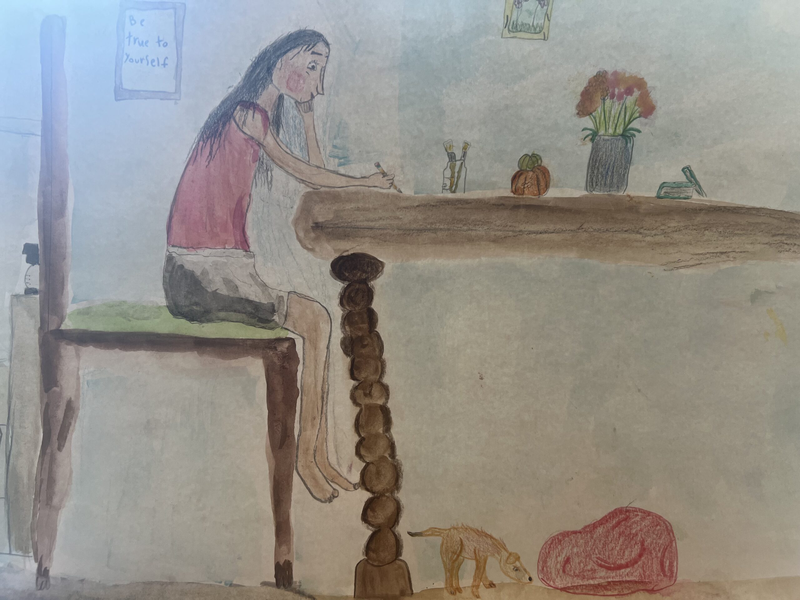 My drawing is titled “A Place Like Home” because drawing is a safe place for me and safety is sacred.
