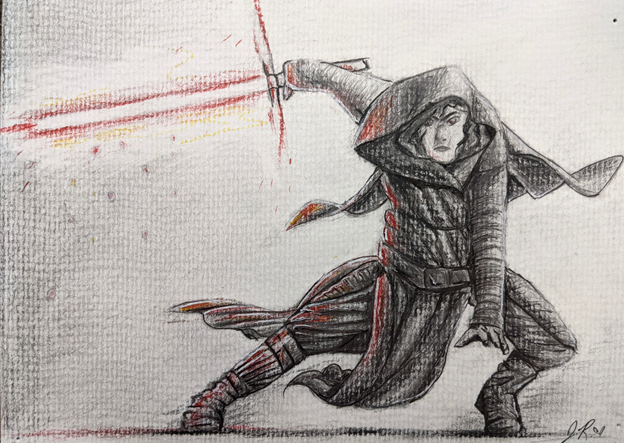 This is a piece of pure inspiration. It depicts a warrior of our future. I hope for a future where a woman is recognized for her strength. I dream of a future that cherishes our defenders: police and soldiers. I want to live in a community that honors those that come from a long line of warriors, like my Cherokee ancestors – a sentinel who fights to protect and end wars, not to start them.