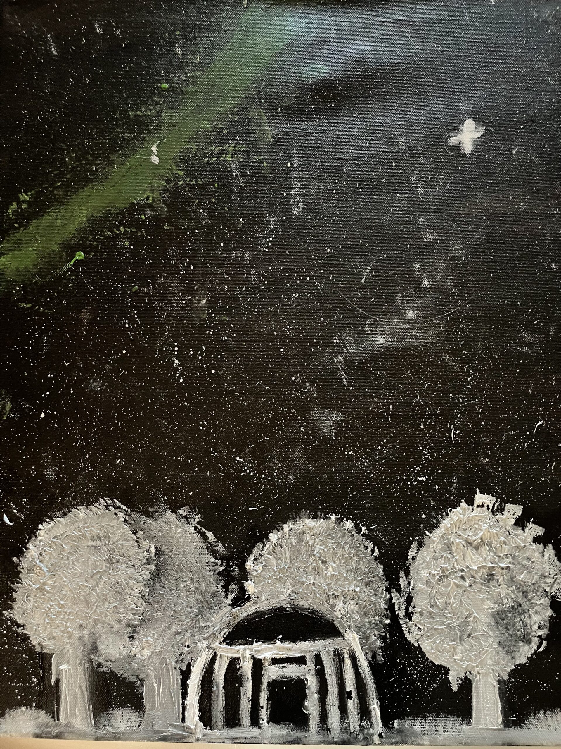 This hoghan is the one from my home. It is very sacred to me because my family holds ceremonies here. This is where my great great grandmothers taught my masani and cheii all the songs and prayers they know today. This place is very precious to me. At night, you don’t need a flashlight, the stars are our guide, they are always so bright.
