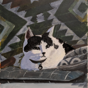 This is a portrait of my cat, Oreo. I think he is sacred to me because he got me through some tough moments in life. He recently passed away in July, he would’ve been ten years old. Now whenever I do something, whether it be music, art or just about anything, I keep him in my heart.