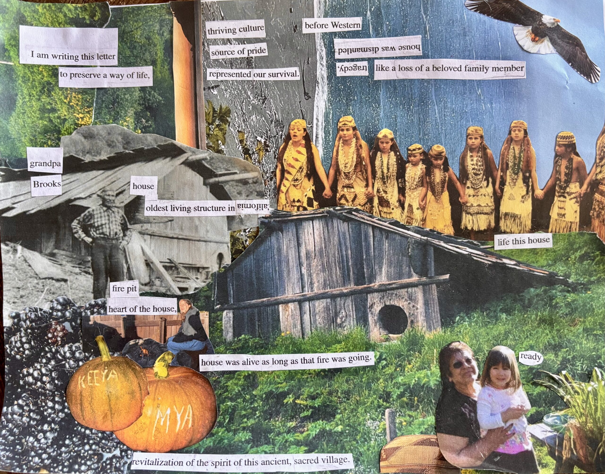 I come from the House of La’yeq, where the Klamath River meets the Pacific. Our redwood plank-house was the oldest remaining structure on the river until a UC Berkeley researcher dismantled it in the 1990s. This spring, my mom submitted a grant to support its reconstruction, inspiring me to reimagine what growing up with the house could have been. I realized its heart existed even without a physical form. This piece reaffirms my relationship to our house and imagines how it can grow. I created this using family archives, my photos and words from Yurok Tribal member Josh Norris.