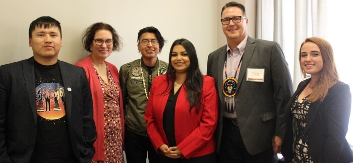 Native youth panelists with Casey Family Programs staff. LtR: Kendrick Eagle, Anita Fineday, Damien Carlos, Isabel Coronado, Mote Fox, Jessica Bradby.
